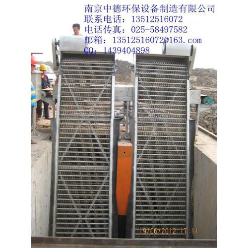 回转式格栅除污机是由若干耙齿装配在回转链上,随着链条做回转运动,将栅前拦截的污物带出水面,并随着链条的回转运动将污物自卸到格栅后的输送机中,液体则通过耙齿间形成的栅隙流过去,整个工作状态连续进行。