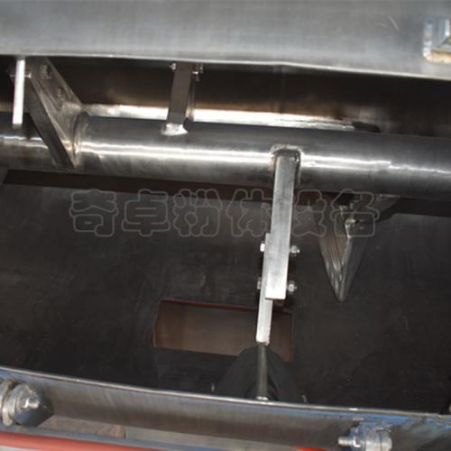奇卓犁刀混合机工作原理:连续式犁刀混合机内部采用曲面式刀面的犁刀,在每次转动的作用下,物料被犁刀双向刀面分成两个方向的螺旋形物料流,并与附近的犁刀作用的物料相结合。反复的且多轨迹的作用效果,连续式的生产方式下的混合物料的均匀性。