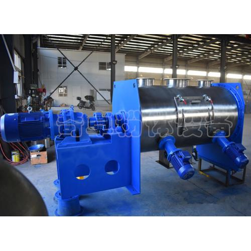 奇卓犁刀混合机由传动机构、卧式圆形筒体、犁刀、飞刀四部分组成,不同物料按设定好的固定配比连续不断地进入连续式犁刀混合机中,通过调整混合机的转速和截流装置、控制物料在筒体内的停留时间。