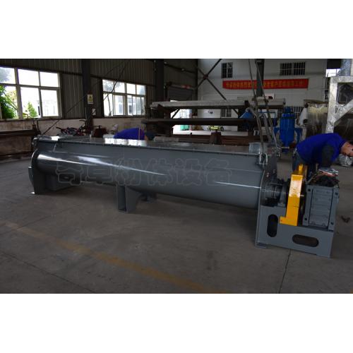 WZL系列无重力混合机以强烈混合来满足用户要求,卧式简体内两根搅拌轴等速反向旋转,搅拌轴上布置的桨叶确保物料径向、环向、轴向三向运动,形成复合循环,在极短的时间内达到均匀混合,并在简盖上配置雾化喷嘴以满足固液混合使用。