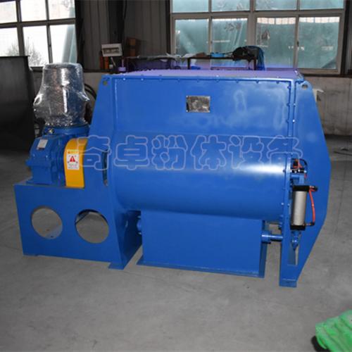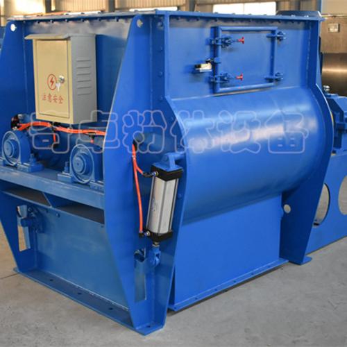 无重力混合机采用卧式W型筒体,内设两组反向旋转的平行轴,两轴上装有相反角度的浆叶(称双卧轴),运行时带动物料达到抛物线的***高点使物料瞬间失重,称之为无重力点,在该点不同粒径、不同密度的物料实现均匀混合,亦称无重力双轴浆叶混合机,两侧的物料即反向运动,物料相互落入对面区域内,中心部位形成对流,从而确保物料径向、环向、轴向三向抛洒运动,形成复合循环,迅速达到均匀混合,无重力混合机设计混合时间1~3分钟,混合后由底部出料。
