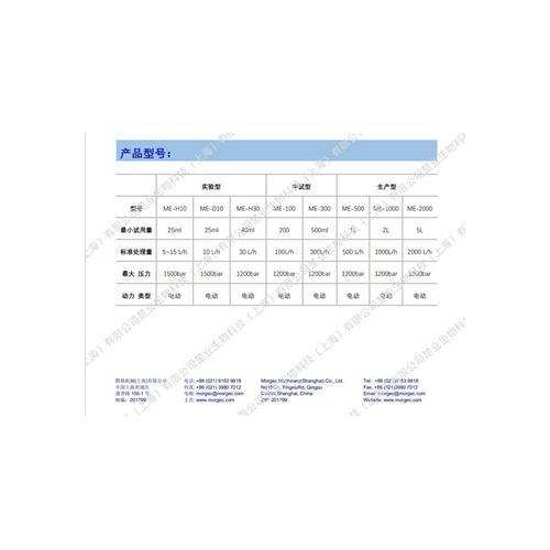 楚业生物科技(上海)公司,长期为客户提供多种MORGEC高压均质机、均质机、均质器、实验型均质机、微射流均质机、中型高压均质机、控温型均质机、进口均质机、进口高压均质机、均质仪、细胞破碎仪、高压细胞破碎仪、控温型细胞破碎仪、细胞破碎仪、过滤挤出器、脂质体挤出仪、脂质体挤出器、脂质体过滤挤出器、手推式挤出仪、中试过滤挤出器、生产型过滤挤出器、无菌挤出器等设备、以及多种服务、如均质机维修、均质机售后服务、均质机报价、均质机参数、均质机结构、均质机选型、均质机使用方法、均质机做样等。