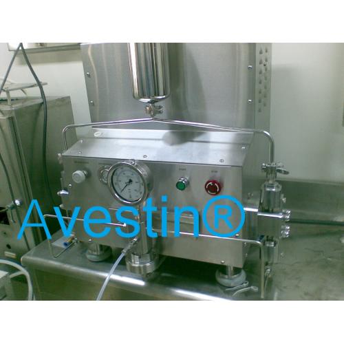 脂质体:在15000Psi(1000Bar)下均质,在通过过滤挤出器(经过聚碳酸酯膜),也可以均质+挤出,可制备出50nm、100nm、200nm以下的脂质体, 您也可以选择零损耗1毫升。手推式脂质体挤出器或者气动15毫升脂质体挤出器,聚碳酸酯膜有直径19mm、25mm、47mm、90mm、142mm、293mm等可制备出15nm、50nm、100nm、200nm以下脂质体。均质,乳状液:一般在10000Psi(700Bar)-20000Psi(1400Bar)下形成,可达到纳米级。分散:一般直径在10-100um情况下,以5000Psi(350Bar)先运行一遍,打碎大颗粒,再在25000Psi(1700Bar)下处理分散体,可达到纳米级
