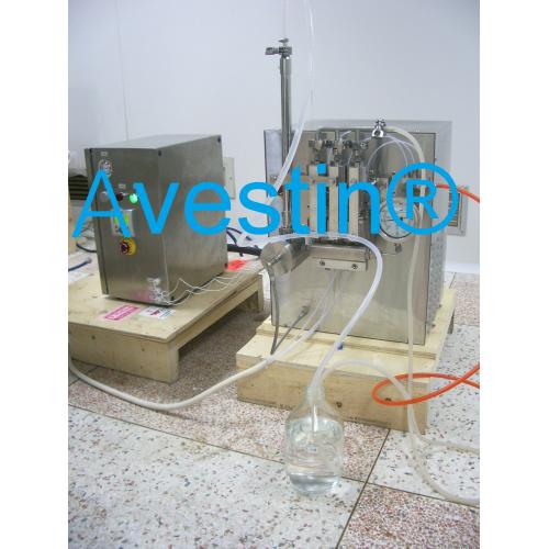 脂质体:在15000Psi(1000Bar)下均质,在通过过滤挤出器(经过聚碳酸酯膜),也可以均质+挤出,可制备出50nm、100nm、200nm以下的脂质体, 您也可以选择零损耗1毫升。手推式脂质体挤出器或者气动15毫升脂质体挤出器,聚碳酸酯膜有直径19mm、25mm、47mm、90mm、142mm、293mm等可制备出15nm、50nm、100nm、200nm以下脂质体。均质,乳状液:一般在10000Psi(700Bar)-20000Psi(1400Bar)下形成,可达到纳米级。分散:一般直径在10-100um情况下,以5000Psi(350Bar)先运行一遍,打碎大颗粒,再在25000Psi(1700Bar)下处理分散体,可达到纳米级