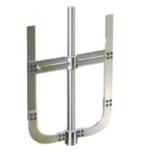 锚式、框式搅拌器属于同一类,统称锚框式搅拌器,该种搅拌器的叶轮桨径对罐径之比较大。使用于低粘度液体时,锚式叶轮的叶径与罐径比为0.7~0.9,对于高黏度液体则为0.8~0.95.转速通常为10~50r/min。为了增大搅拌范围和带走罐壁上的残留物或液层,锚框式搅拌器的外廓要接近搅拌罐的内壁,其底部的形状为适应罐底的轮廓也有椭圆、锥形等。为了增大对高粘度物料的搅拌范围以及提高叶轮的刚性,还常常要在锚式及框式上增加一些立叶和横梁,这样使得锚框式的结构形状出现了多种多样。