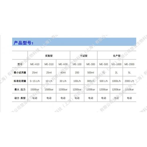 处理产品:菌体破碎(比如大肠杆菌),脂肪乳,脂质体,脂质纳米粒,纳米悬浮液,食品,化工产品等