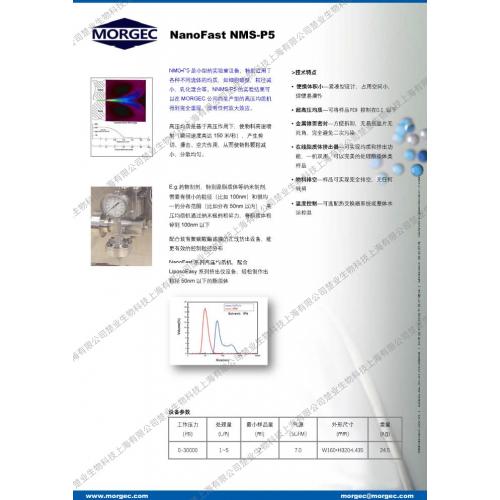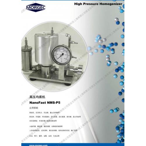 产品描述:NMS-P5微射流 纳米均质机采用气动型设计,结构紧凑,占地体积小,高压稳定,性价比高