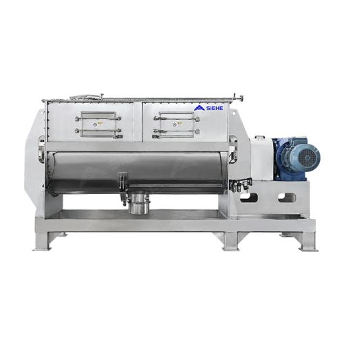 卧式结构配合独特的双螺带式设计,使其不仅能进行粉体与粉体的混合,也能适用于粉体与液体的搅拌混合,还能搅拌膏状、粘稠的或比重较大的物料(比如腻子、真石漆、金属粉末等产品);螺带径向线速度一般设计在1.8~2.2m/s,偏柔性混合,对物料破坏性低。