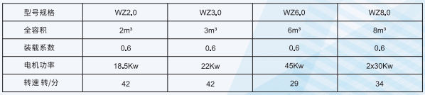 卧式无重力混合机,滚筒内装有双轴旋转反向的桨叶,桨叶成一定角度将物料沿轴向、径向循环翻搅,使物料迅速混 合均匀;为降低设备易损件的更换成本,桨叶叶片做成两片式,在叶片基座上垫一块可移动叶片,可直接更换磨损的叶片, 经济快捷;出料形式为气动圆弧阀门紧密嵌入筒内,与筒内壁齐平,无物料堆积和混合死角现象;大开门放料,放料干净快 捷,残留少。